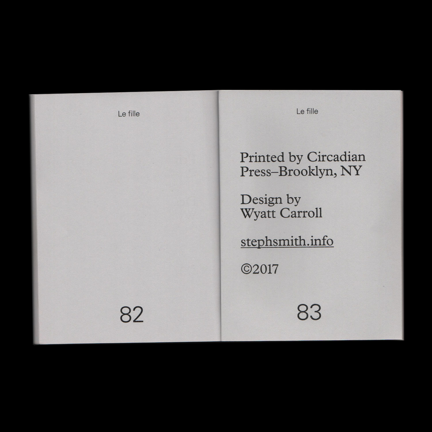Chapbook design for poet Steph Smith. 4.25” x 5.5”, risograph printed cover and interior, edition of 50.